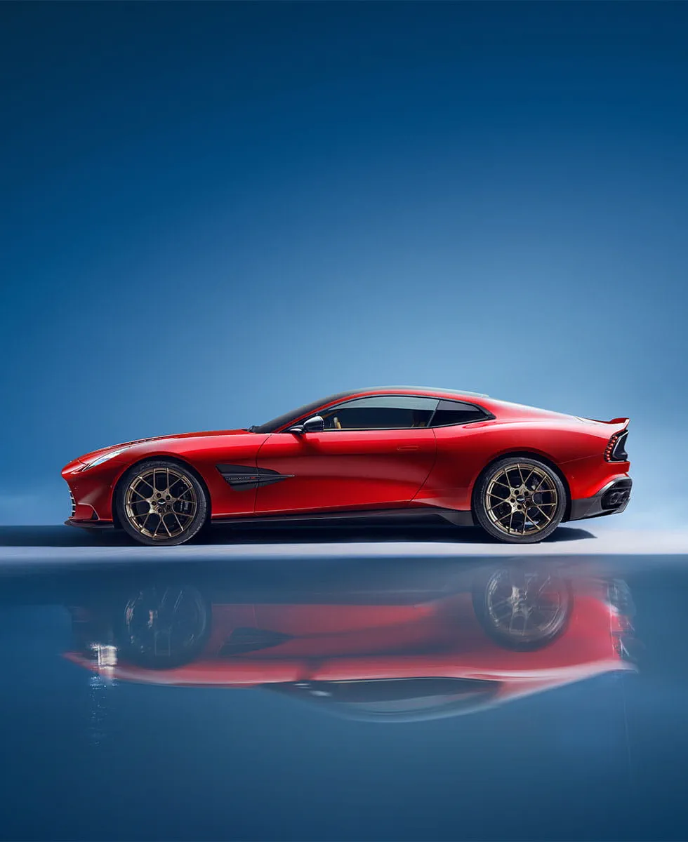 Vanquish pays homage to its heritage through a commanding aesthetic that seamlessly blends classic influences with innovative design cues, exemplified by the iconic V12 emblem symbolising its rich tradition. A new platform extends the distance between the A-pillar and front wheel, strategically positioning the V12 engine further back in the chassis. This configuration not only amplifies its dominant presence but also shifts the front wheels forward, enhancing its dynamic stance.