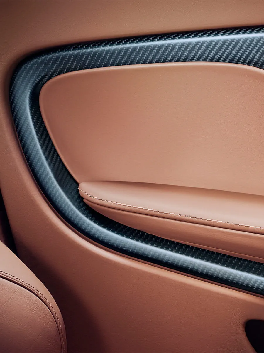 Enter Vanquish’s unique 2-seat cabin, a sanctuary of power and luxury focusing on both driver and passenger. Every control is ergonomically designed, blending digital precision with analogue beauty, featuring exquisite haptic feedback to complement its advanced digital architecture. The dashboard amplifies the feeling of space and immersion, while Vanquish’s design principle emphasises a seamless surge of power and muscularity, linking the engine directly with the interior environment.