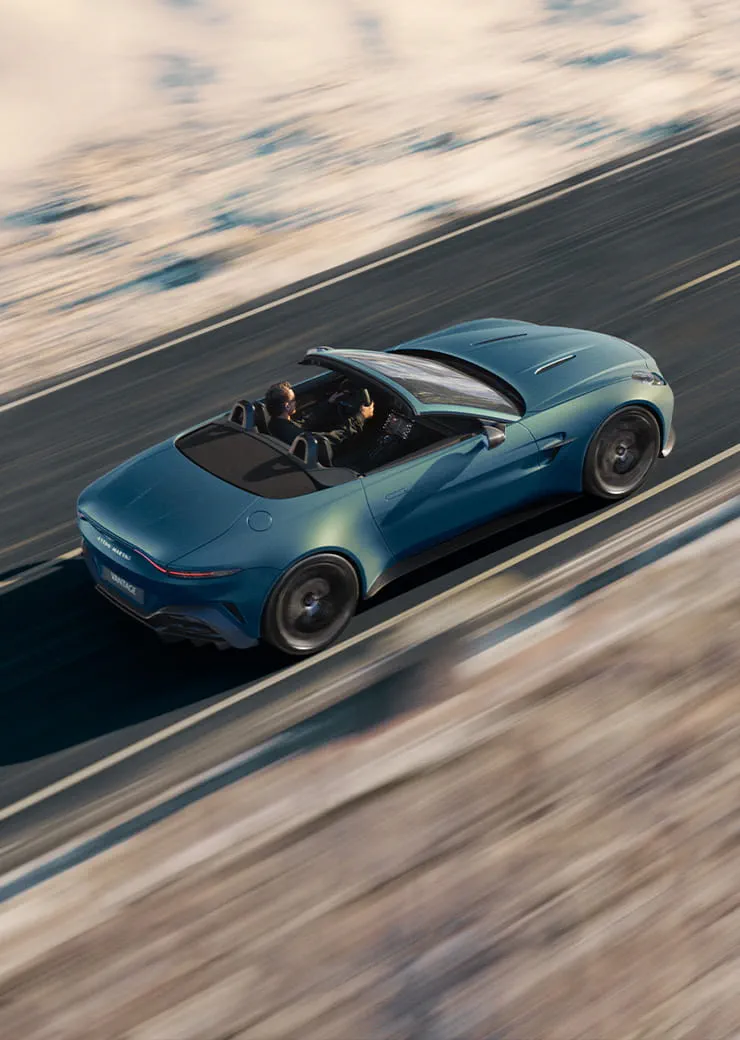 The new Vantage Roadster. Head-turning. Jaw-dropping. Roof-raising. The definitive front-engine, rear-wheel, convertible sports car. Exuding dynamic ability, visceral drama and the sleekest of profiles. A hand-crafted all-aluminium 4.0 litre twin-turbo V8 producing class-leading outputs of 665PS and 800Nm. A roof that opens seamlessly in just 6.8 seconds. The Vantage Roadster – the new benchmark for thrill seekers everywhere. Open your emotions.