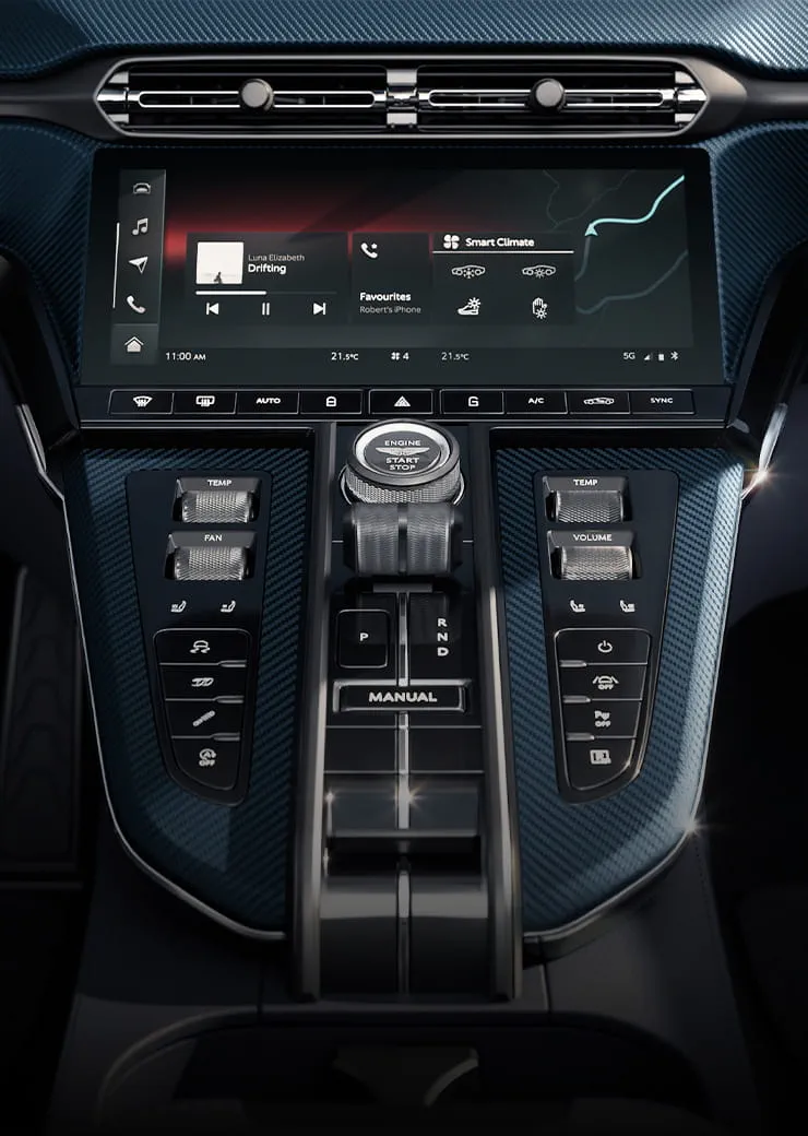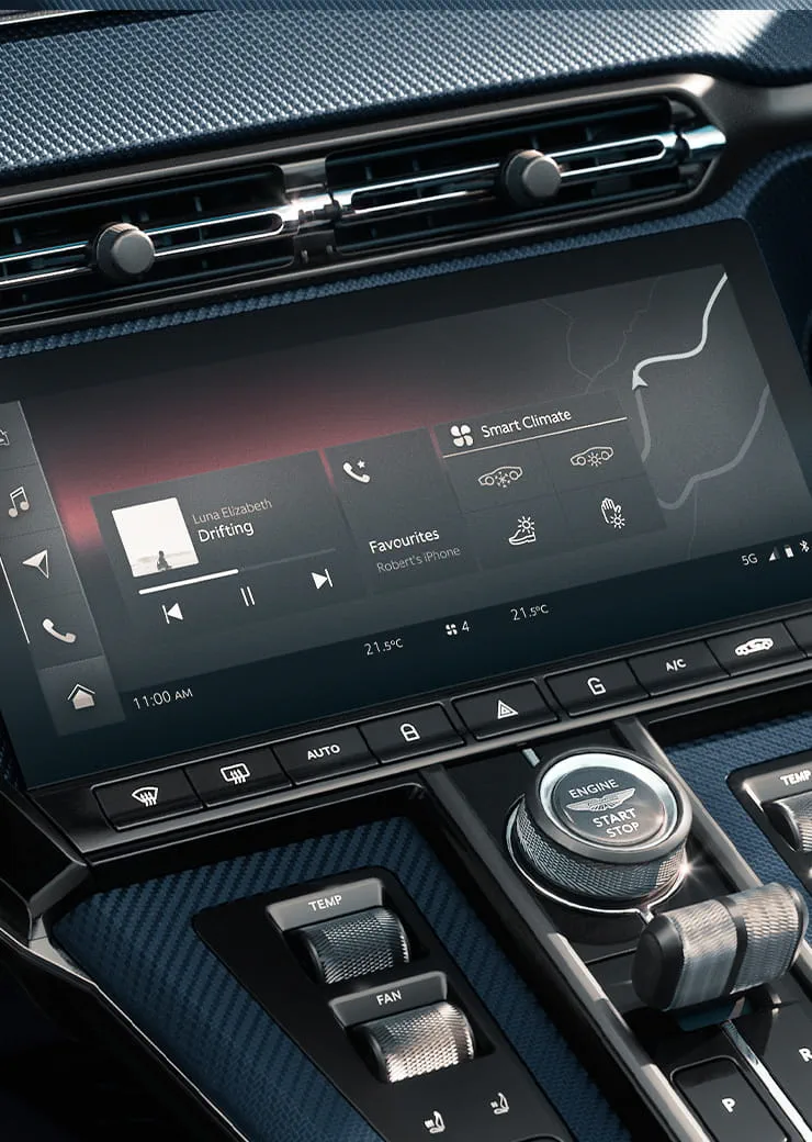 The heart of your Roadster is the core of your open-top driving experience. Clean, unbroken lines. Stylish, slender air vents. A striking yet elegant environment. Under a stunning yet evolving skyline. Fixed around the centre console and beginning with an engaging push of the starter button. The tactile haptics of a metal rotary dial let you explore and savour five different drive modes. More detailed commands can be actioned by the touch of a screen.