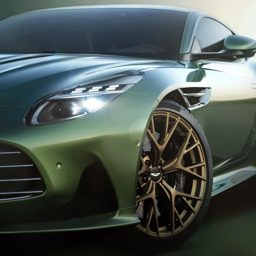 Mounted on new, larger 21-inch alloy wheels, trimmed to maximise the harmony between the tyre and tarmac. DB12 also debuts the new Michelin Pilot Sport 5S tyre. Developed alongside Michelin and bespoke to Aston Martin. A hand spun compound for unparalleled lateral grip, to dampen the effects of rain and cushion comfort into every roll of tread.
